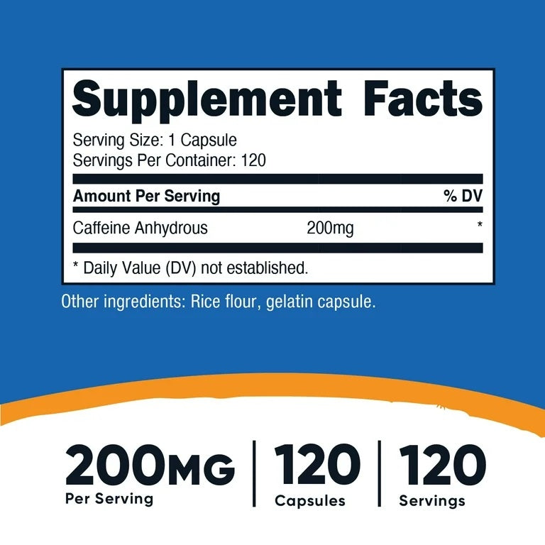 كبسولات الكافيين من نوتريكست توفر 200 مجم من الكافيين النقي في كل كبسولة، وتُعد خيارًا مناسبًا للإضافة إلى الروتين اليومي للأشخاص الذين يرغبون في تضمين الكافيين ضمن نظامهم الغذائي. تأتي العبوة بـ 120 كبسولة سهلة البلع ومناسبة للاستخدام لفترة طويلة.