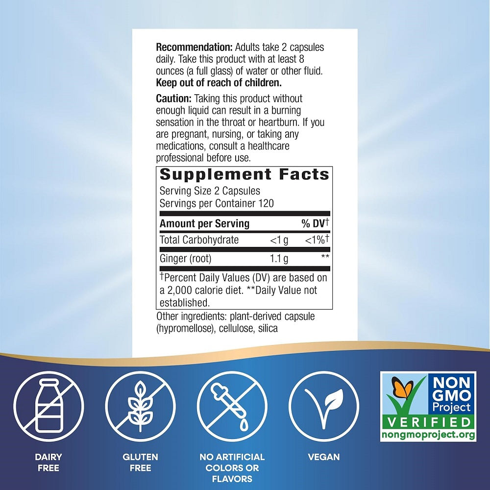 Nature's Way ginger root capsules, with a concentration of 550 mg per capsule, come in a pack of 240 capsules suitable for extended daily use. The product is designed to be an easy addition to your daily diet.
